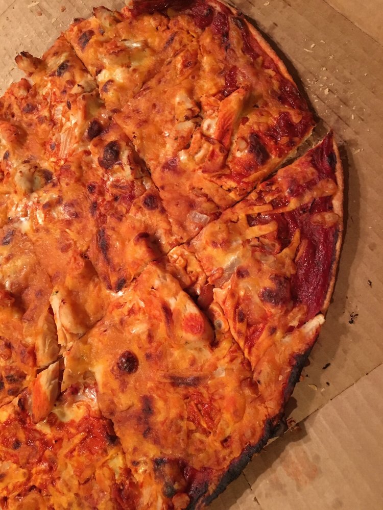 Grilled chicken breast, hot sauce and fresh onions with provolone, American and cheddar cheeses on a cheesy cheddar crust.
