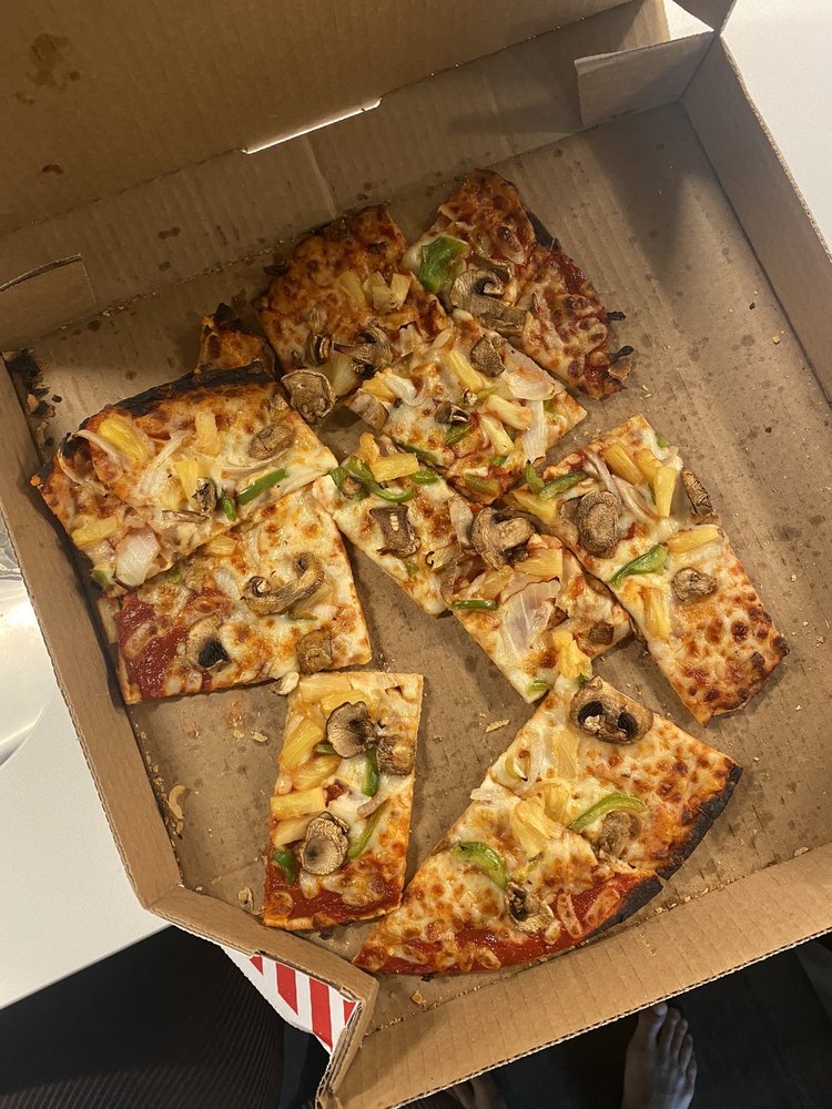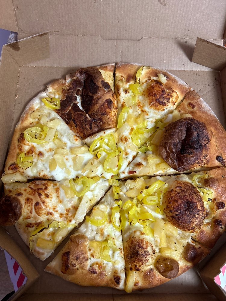 Sliced ham, smoked bacon, pineapple, roasted red peppers, hot sauce, jalapeƱos, cheeses made with 100% real mozzarella and provolone on a cheesy Parmesan Asiago crust.